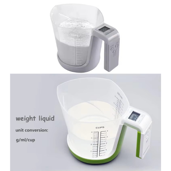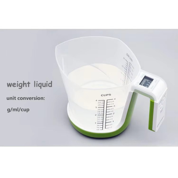 Functions: Tare, units conversion, weight measuring, measuring cup, countdown, thermometer