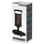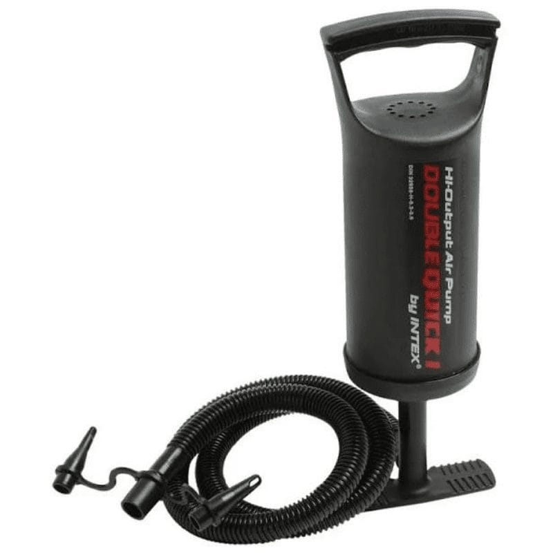 This hand-operated air pump inflates airbeds and rafts with aplomb, as its design forces air through on both the down and upstroke. Two different nozzle attachments accommodate most valves.