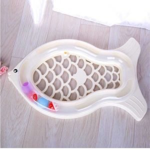 The Fish Shaped Cat Scratch Board with Spring Rat and Rolling Balls is a fun and interactive way to keep your cat entertained while protecting your furniture from claws.