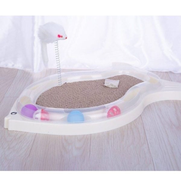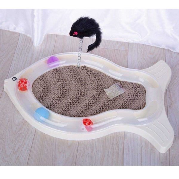 Fish Shaped Cat Scratch Board With Spring Rat And Rolling Balls