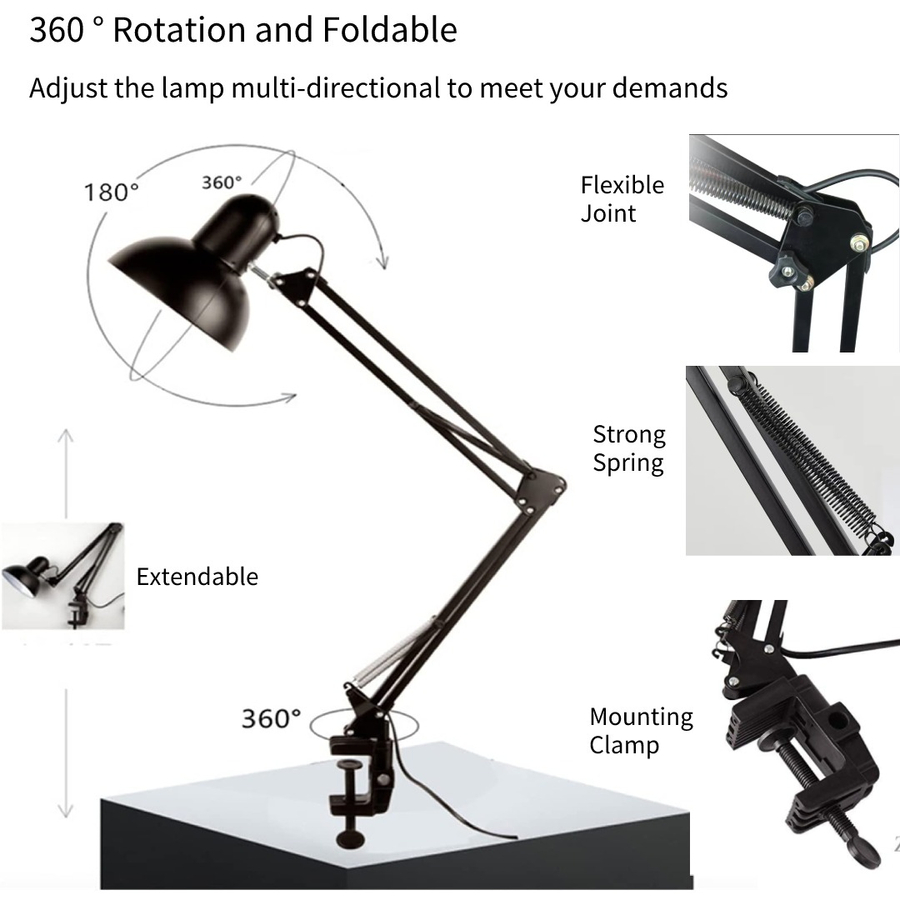 Clamp Type: Strong table clamp for desks, shelves, or tables (max thickness ~5 cm)