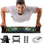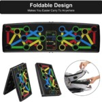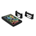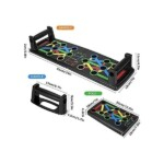 14-in-1 Multi-Gym Equipment This new 14-in-1 design push up board featured with different color-coded push-up board targets specifics Upper Body muscles training (green-back, blue-shoulder, yellow-triceps, red-chest) by moving the handles to different color-coded