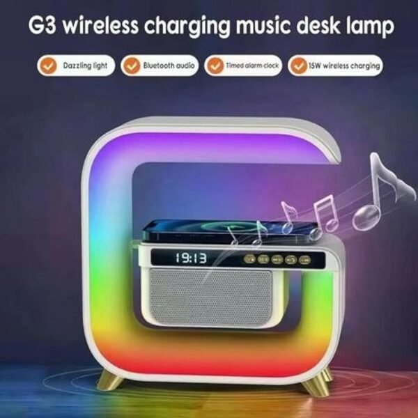 G Shape LED Clock 15W Wireless Charging Ambient RGB Multicolor Speaker