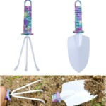 -Ergonomic rubber handles printed with floral patterns. Gardening Hand Tools With Purple Floral Print 5Pcs XF0901
