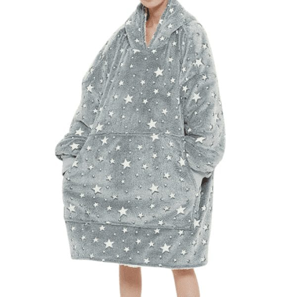 What is in the box:1 x Glow In The Dark Oversized Hoodies Blanket One Size Fits All Grey