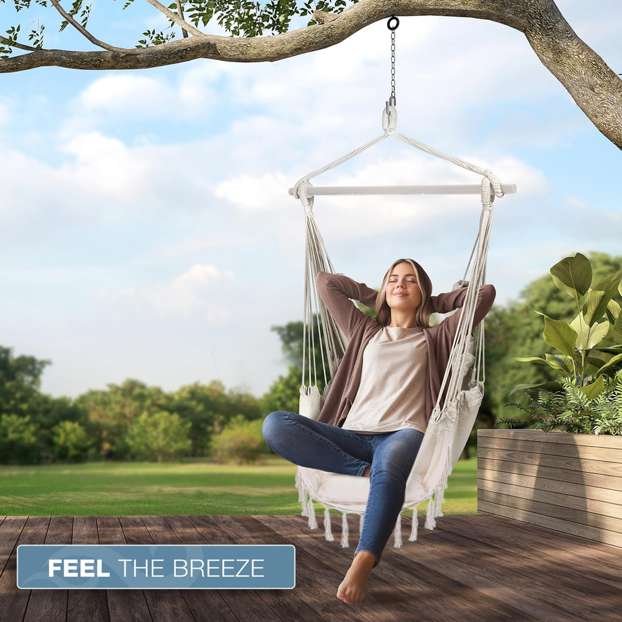 Hammock Hanging Rope Chair with 2 Pillows Indoor or Outdoor Ceiling Swing