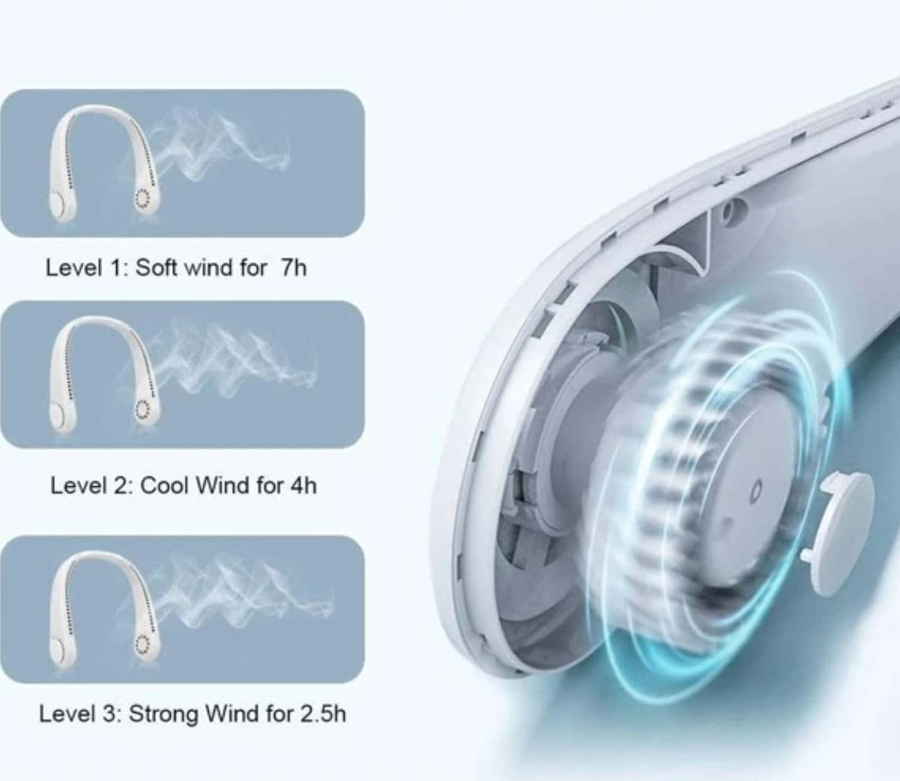 • Hands-Free Design: Worn around the neck for comfortable, hands-free cooling.