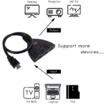 – 3 HDMI in and 1 HDMI out, a great solution to have multiple game systems or other sources attached to HDMI port easily.
