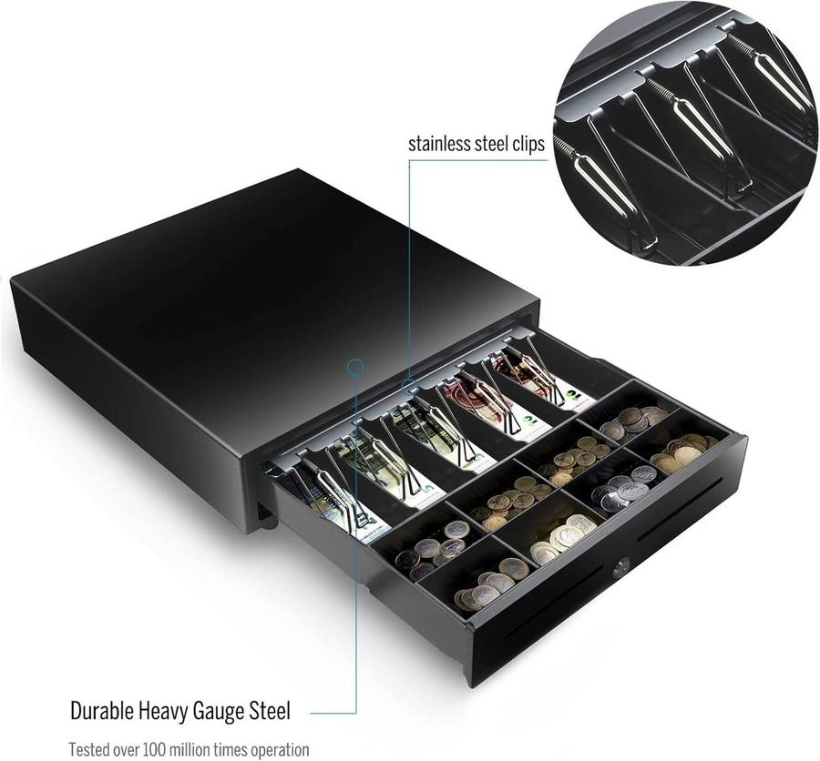 Robust and secure solution for managing cash in retail, office, or event environments. Constructed from high-quality steel, it provides strong protection for coins, bills, and small valuables. Equipped with a lockable lid, removable cash tray, and reinforced compartments, this till box ensures organized cash handling and enhanced security. Compact yet durable, it is ideal for shops, markets, offices, or personal use.
