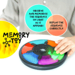 – Memory sequence game: This fun memory game offers a quick-fingered game in a unique light-up sequence. Great for home and travel it can be played solo or with friends. This fun handheld game helps improve brain skills and hand-eye coordination