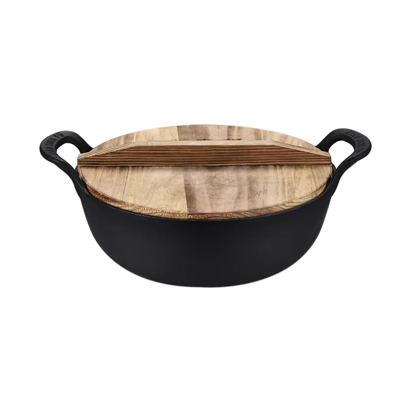 Experience authentic, delicious cooking with the Iron Stew Pot with Wooden Top, designed for superior heat retention and even cooking. Made from thickened, high-quality cast iron, this pot is ideal for stews, soups, curries, slow-cooking, braising, and traditional dishes. The natural wooden lid adds a rustic touch while keeping heat and moisture sealed inside for rich, flavorful meals. Suitable for gas stoves, open fire cooking, induction cookers, and ovens (lid not oven-safe), this stew pot brings durability, style, and performance into any kitchen.