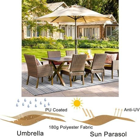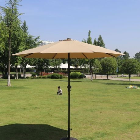 Made from premium UV-resistant polyester, the khaki canopy resists fading, tearing, and sun damage, ensuring long-lasting performance. The heavy-duty round base keeps the umbrella firmly in place, while the adjustable tilt function allows you to block the sun at any angle. Designed for durability and comfort, this umbrella delivers both protection and elegance for any outdoor space.