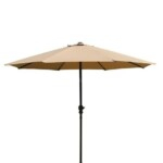 Khaki Patio Umbrella For Garden Beach Pool Sun Protection With Round Base