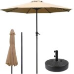 The Khaki Patio Umbrella with Round Base combines practical sun protection with a neutral, sophisticated color that fits seamlessly into any outdoor environment. Its spacious round canopy creates a shaded oasis on patios, balconies, pool decks, gardens, or beaches, making it perfect for outdoor meals, gatherings, or leisurely relaxation.