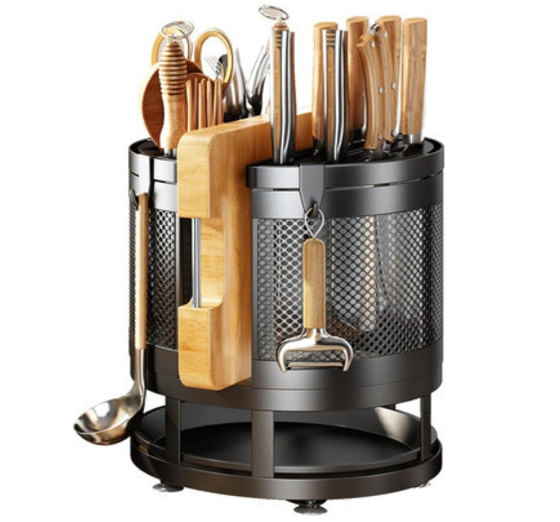 Sleek and practical storage solution that keeps your knives organized, easily accessible, and safely stored. Its 360° swivel design allows quick access to your knives from any angle, while the modern, compact design fits neatly on your countertop. The holder accommodates a variety of knife sizes, protecting the blades while maintaining a clean and stylish kitchen environment.