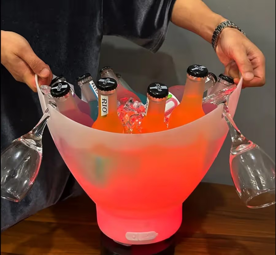 Elevate your parties and gatherings with the LED Light Ice Bucket with Bluetooth Portable Speaker. Combining functionality and entertainment, this innovative ice bucket keeps your drinks chilled while providing high-quality audio for music on the go. The LED lights create a vibrant, colorful ambiance, perfect for bars, lounges, home parties, or outdoor events. Rechargeable, portable, and stylish, it’s the ultimate combination of convenience, fun, and sophistication.