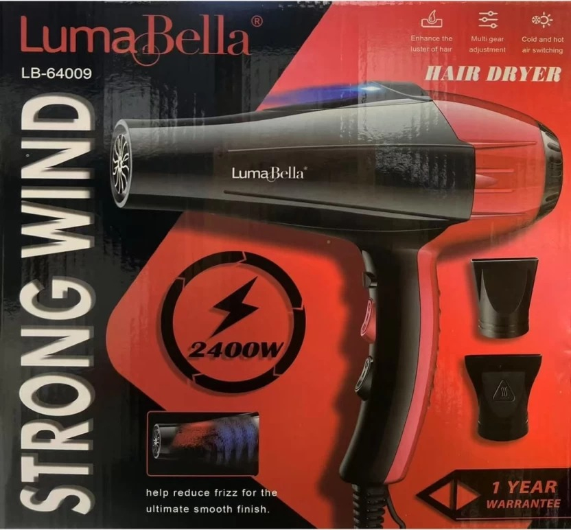 The Luma Bella Hair Dryer is an electric styling tool designed to quickly dry and style your hair at home or on the go. It blows warm air over wet hair to evaporate moisture, helping you achieve smooth, dry hair faster than air-drying alone. Many models offer adjustable heat and speed settings so you can customize airflow for different hair types, along with features like cool air/cold shot for setting styles and concentrator nozzles for focused airflow. It’s lightweight and ergonomic for comfortable use, suitable for everyday drying and basic styling needs.
