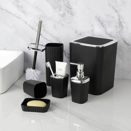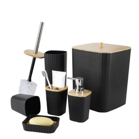 Luxury 6-Piece Bathroom Accessories Set With Wooden Lid – Black
