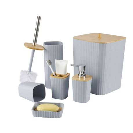 Luxury 6-Piece Bathroom Accessories Set With Wooden Lid – Grey