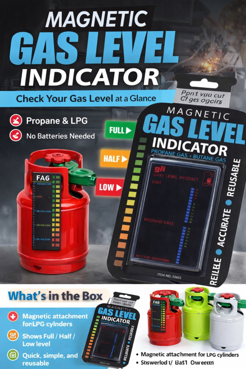 Monitor your gas levels easily and avoid unexpected shortages with this magnetic gas level indicator. Designed to attach securely to LPG gas cylinders, it provides a quick and convenient way to estimate the gas level inside the tank.