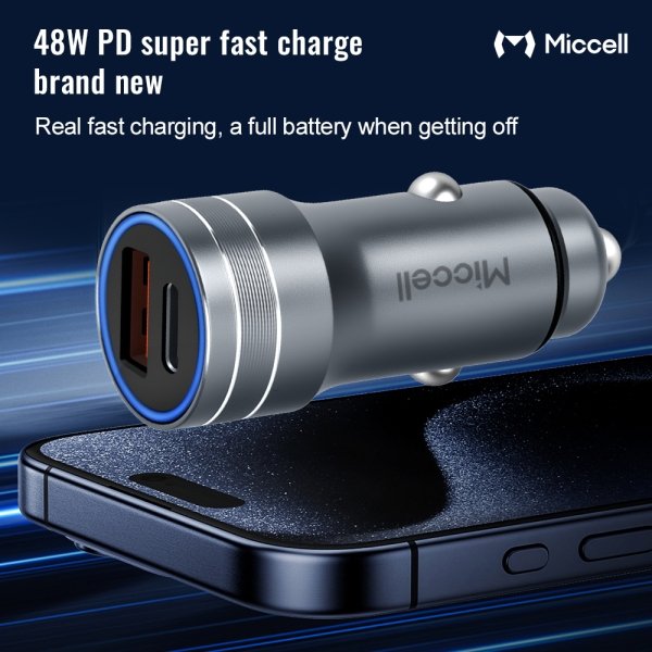 Stay powered on the road with the Miccell A + C 48W Car Charger Head. Featuring both USB-A and USB-C ports, this high-speed charger delivers up to 48W of total output—perfect for fast charging smartphones, tablets, GPS devices, and more while driving.