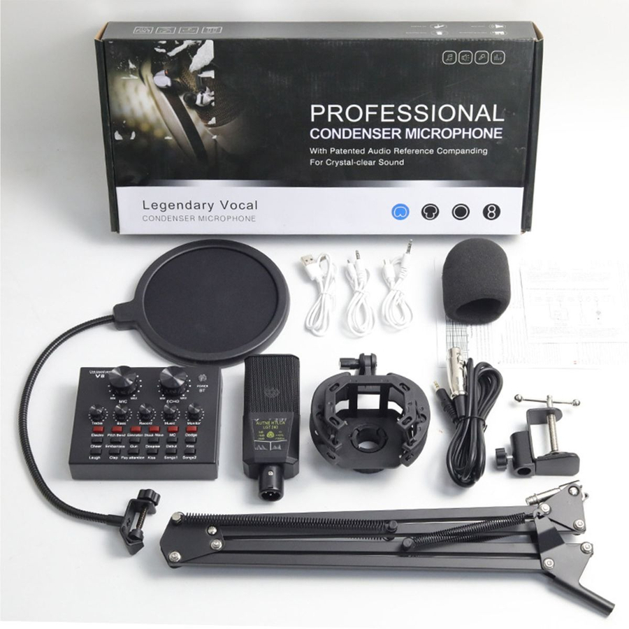 Microphone Kit with V8 Sound Card Studio Condenser