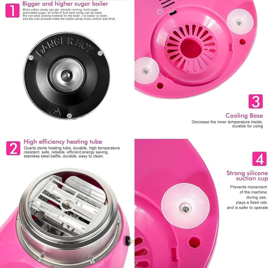 Its compact size makes it perfect for home use, parties, kids’ birthdays, and family gatherings. With a stable base, easy-to-clean detachable parts, and simple one-button operation, this mini floss maker offers convenience, safety, and enjoyment for all ages.