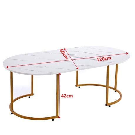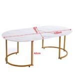 This Modern Coffee Oval Center Table blends elegance and contemporary styling, featuring a smooth faux marble top paired with a refined white gold metal frame. Its clean oval silhouette enhances any living space while providing ample surface area for décor, beverages, and everyday essentials.