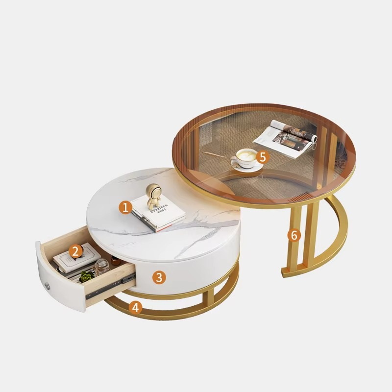 Modern Marble & Glass Round Nesting Coffee Table Set – White And Gold