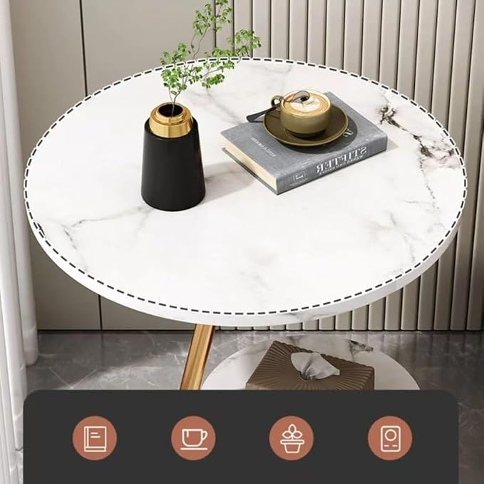 Modern Round Coffee Table with 2 Tiers, Gold Metal Frame and Faux Marble Top, White Side Table for Living Room, Bedroom, Balcony, Office
