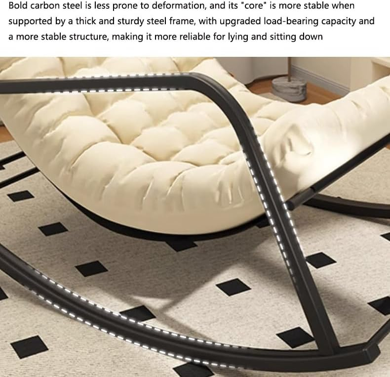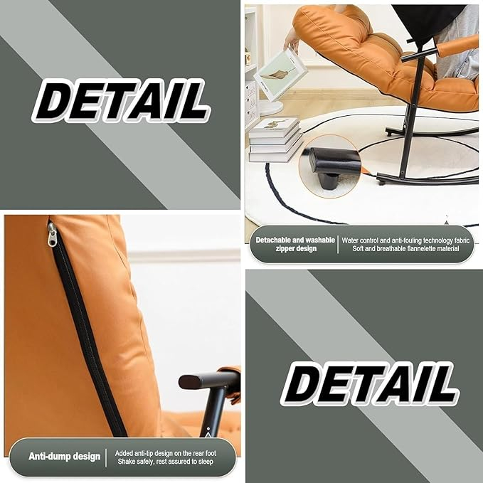 Embrace superior comfort with the ergonomically designed indoor rocking chair, complete with supportive armrests and footrest. Whether you’re reading, napping, or stargazing, the armrests ensure your arms and shoulders stay relaxed throughout your relaxing time. Besides, footrest can be adjusted(5 gears adjustable) to effectively support the leg’s load-bearing points. Different support heights can promote blood circulation and relieve leg pressure. Experience the ultimate relaxation in our modern and comfortable upholstered rocking chair, designed to elevate your resting experience like never before. Sink into its plush cushioning and enjoy the gentle rocking motion amidst the serene indoors or Balcony. Our rocking chairs use all-inclusive technology cloth, which is dirt resistant and easy to clean, and can also be disassembled for machine washing. Filled with thick Medium density foam sponge. Our rocking chair has an adjustable back tilt angle.
