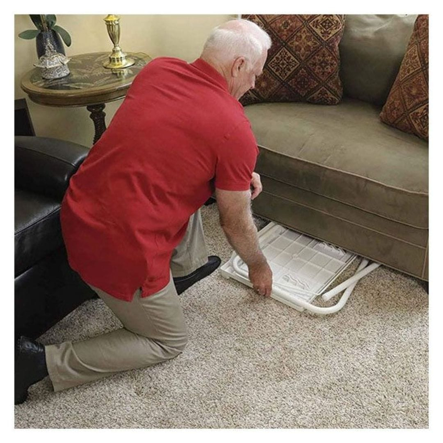 The indoor-outdoor table folds into a semi-folded position and you can easily store it under a sofa or in a closet.