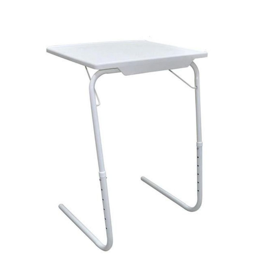 Tablemate II Portable Table: Adjusts in three different ways _ to your body size, to the activity you’re doing and the way you are sitting Slides right up with just one finger Assembles in just two minutes without any tools or fasteners Folds into a semi-folded position for easy storage.