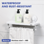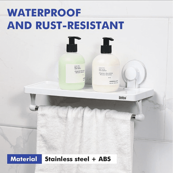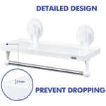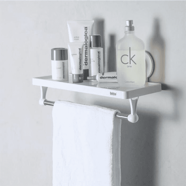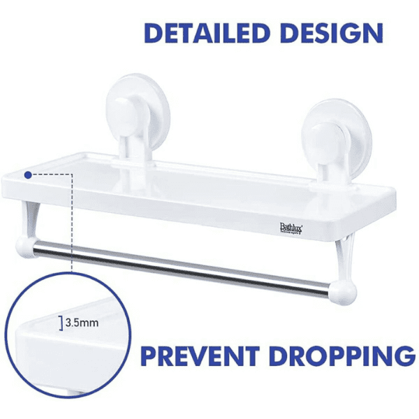 Features: – Shelving with strong suction for bathroom wall or kitchen with bar to hang towels or rags. – Multifunction shelf where you can store all kinds of bathroom or kitchen accessories such as comb, hair brushes, cosmetics, makeup brushes, hair dryer, toothpaste, towels and other bathroom tools to keep your bathroom clean and tidy. – Perfect to save space in small places. – Its strong suction cup is made with a combination of materials and reinforced with glue to improve its suction. – Ideal for placing on smooth surfaces, because it has a suction cup, does not require drilling or sticking to the wall, allowing easy handling, cleaning and change of place when required. Specifications: – Made of high quality ABS plastic – Waterproof – Moisture resistant – Easy to clean – It supports a load of up to 4kg – Small and compact – Colour: White What is in the box: 1 x Multi-functional shelf with rack