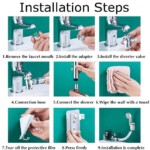 – Sucker wall-mounted, convenient to install, with an adapter to connect water tap and sprayer.