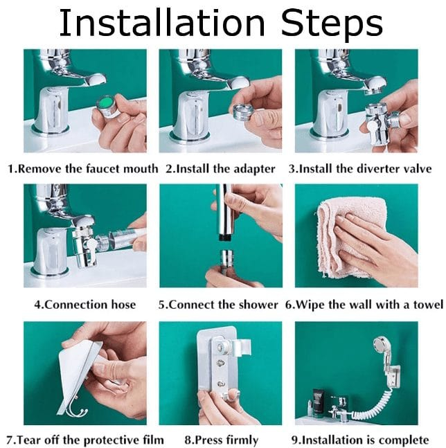 Functional Sink Hose Sprayer Set – Comes with a set of handheld showerheads, faucet diverter valves, hoses and shower head holder brackets. Connects to existing bathroom or utility sink for easy faucet spray washing.