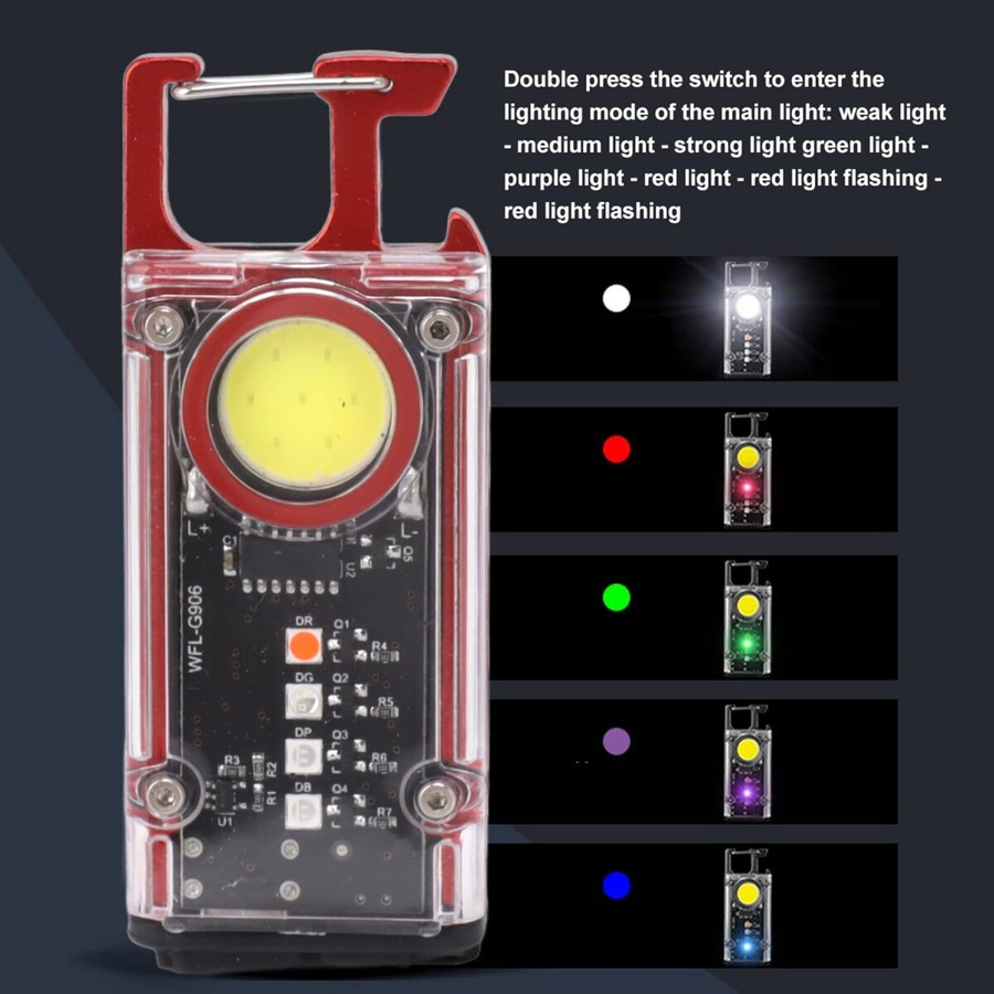 Compact and versatile lighting tool designed for convenience and portability. Featuring bright COB (Chip-on-Board) LED technology, it delivers powerful, even illumination in a small size. Rechargeable via USB, it eliminates the need for disposable batteries, making it eco-friendly and cost-effective. Its multifunctional design often includes multiple light modes, such as high, low, and flashing, making it ideal for everyday carry, emergencies, outdoor activities, or as a handy mini flashlight for keychains, backpacks, or pockets. Durable and lightweight, it combines practicality, convenience, and reliability in one compact device.