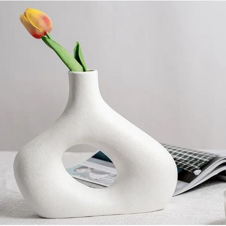 1 × Nordic Circular Hollow Ceramic Flower Vase – White