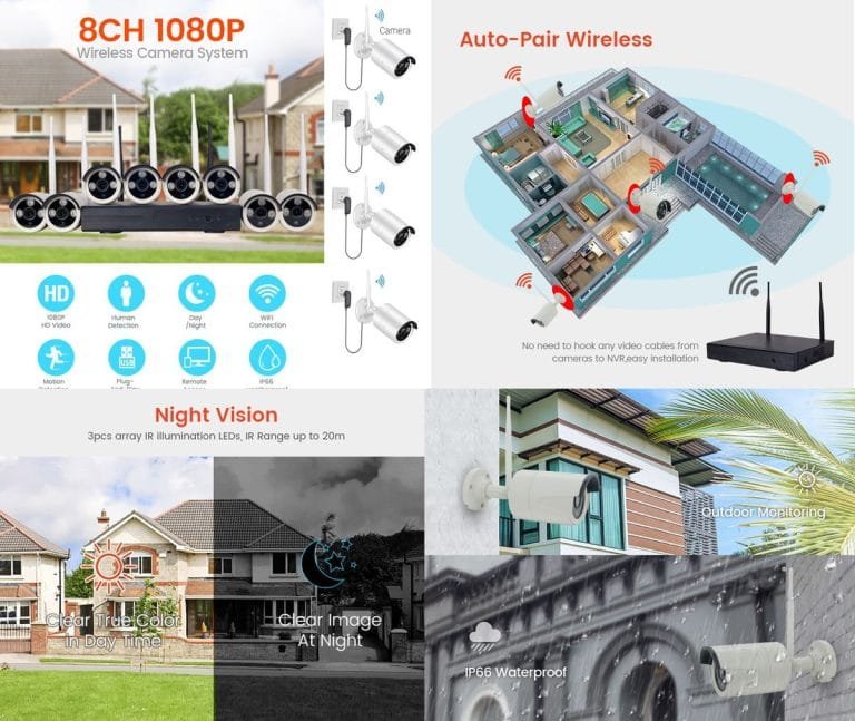 This s a security surveillance camera system, Include a Network NVR and 4 wireless camera.