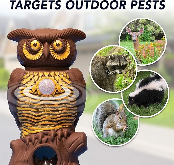 • 1 × Motion Sensor & Ultrasonic Pest Repellent Owl Statue