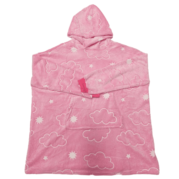 1 x Oversized Plush Blanket Hoodies For Kids Pink