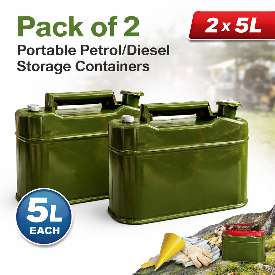 Pack of 2 Portable Petrol/Diesel Storage Container -5L (Green)