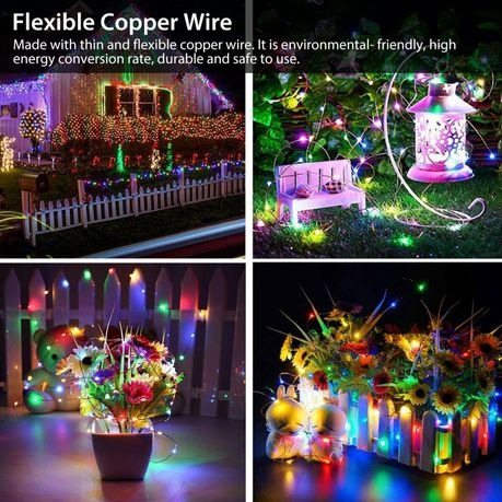 Transform any indoor or outdoor space with the magical glow of our Solar Powered RGB Copper Wire Fairy Lights. Each 10-meter strand features vibrant multicolor LEDs embedded along ultra-flexible copper wire, allowing you to wrap, bend, and shape the lights around plants, furniture, railings, and décor with complete creative freedom. These lights charge automatically during the day using solar energy and illuminate at dusk, adding an enchanting sparkle to gardens, patios, balconies, pathways, bedrooms, and special events.