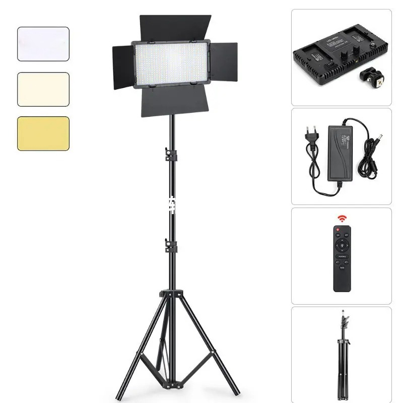 Professional lighting solution designed for photography, videography, live streaming, and studio shooting. It provides soft, even illumination that reduces harsh shadows and enhances image clarity. The panel uses energy-efficient LED lights to deliver consistent brightness with accurate color rendering, making it ideal for portraits, product photography, and video recording. Lightweight and easy to set up, it is suitable for both indoor studios and on-location shoots, offering reliable and adjustable lighting for high-quality visual results.
