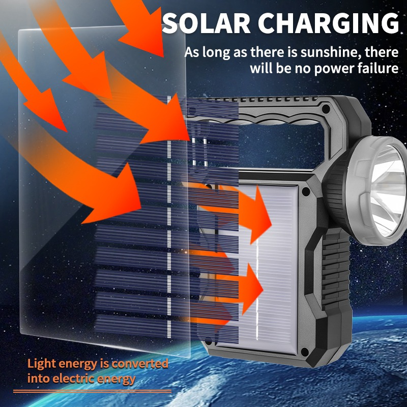 Stay prepared anywhere with the Portable LED Flashlight with Solar Power, designed for outdoor adventures, emergencies, and everyday use. This multifunction flashlight features bright LED illumination, dual charging options (solar and USB), and a durable, lightweight build for reliable performance.