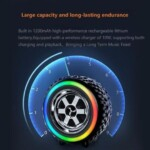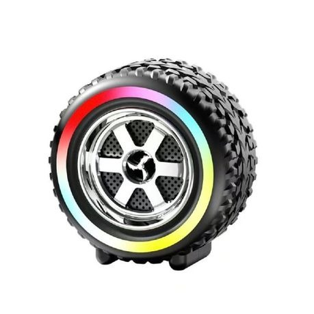 • LED Tyre Design: Unique tyre-shaped speaker with LED lights that pulse with your music for a fun visual effect.