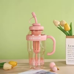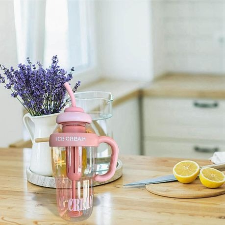 The Portable Plastic Water & Ice Cream Bottle in pink is perfect for adding a stylish touch to your hydration routine. With a 1200ml capacity and built-in tea infuser straw, it’s ideal for water, iced tea, or smoothies, making hydration both fun and convenient. Perfect for home, office, gym, or outdoor adventures.