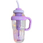 Portable Plastic Water And Ice Cream Bottle 1200ml With Tea Infuser Straw – Purple