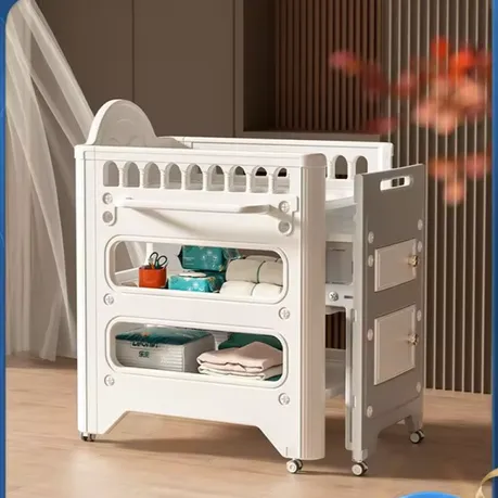 Make diaper changes easier, safer, and more organized with the Pull-out Diaper-Changing Table with Storage Box Crib & Extra Latex Pad. Designed for modern parents, this versatile unit combines a pull-out changing station, built-in storage, and a comfortable crib area all in one compact design. The smooth pull-out mechanism provides instant access to a secure changing surface, while the spacious storage compartments keep diapers, wipes, creams, and baby essentials neatly within reach.