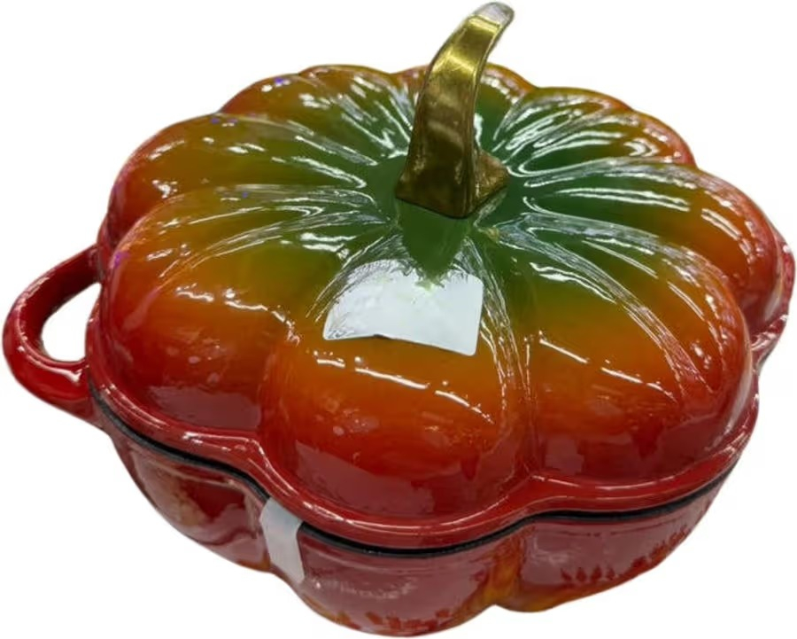 A charming 3-litre pumpkin-shaped cast iron pot finished with an enamel coating that resists sticking and makes cleaning easier. The design combines functional heat retention with an eye-catching seasonal or decorative look — ideal for slow cooking stews, soups, casseroles and even baking bread.